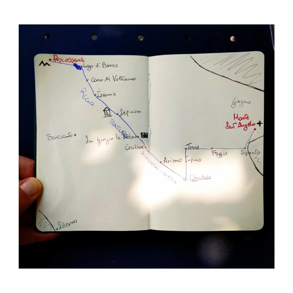Nel frattempo, li aspetta l’Abruzzo, il Molise, una piccola porzione di Campania, l’Irpinia, la Puglia, il Tavoliere, un lembo di Mar Adriatico. Diverse aree archeologiche, un castello su una collina, molte chiese dalle mura bianchissime, lo studio di un editore, alcune ospitalità pellegrine, tantissimi rovi e incroci mancati.