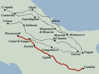 Il Regio Tratturo Pescasseroli – Candela è in rosso.